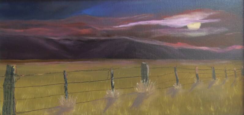 Fence in Moonlight Oil on Canvas, 10hX20w, unframed, Price $