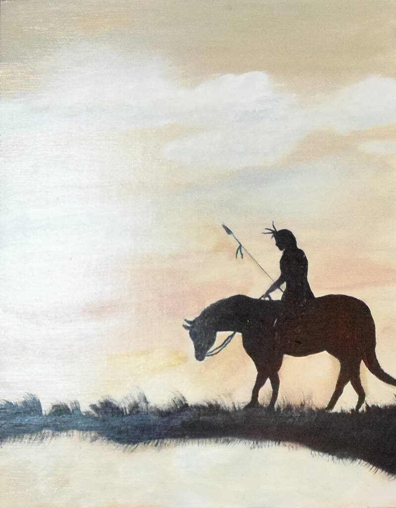 Cowboy and Mountain, Oil on board, 14hX11w Ride into Sunset, Oil on board, 14hX11w Indian Silhouette, 14hX11w, Giclee available