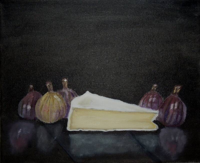 Figs and Brie 8hX10w Price $ Red and Yellow Apples 6hX6w Silver Pitcher and Pears 8hX10w Price $